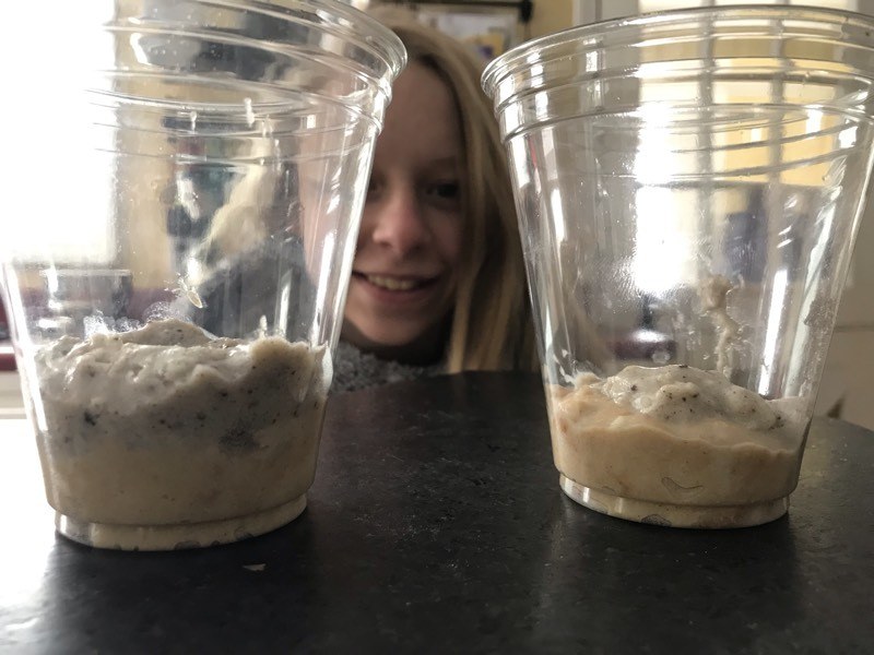 In small mixing bowl combine, Vanilla UMP, peanut butter, and about 3oz water. Mix until smooth. In separate mixing bowl, combine Cookies & Crème UMP and just enough water to make another pudding. Layer the pudding in a serving dish. This will make enough for two. Place both bowls into freezer for 15-20 minutes to set. Remove and try to breathe between bites.